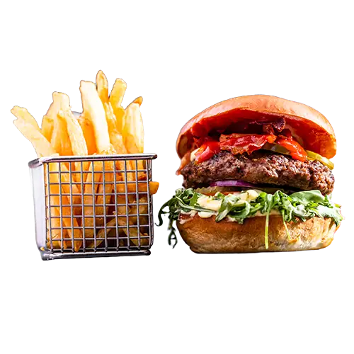 Cualquier burger doble + Papas Cheddar & Bacon + Bebida.